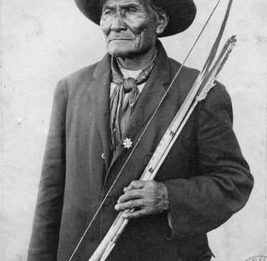 Geronimo, 58 år gammel på dette tidspunktet, men fortsatt med en krigers skarpe øyne og stødig hånd, holdt sin favorittrifle – en Winchester Model 1876 som han hadde tatt fra en død amerikansk rancher året før. Han var kjent blant både Apache og hvite som en bemerkelsesverdig skytter, men hans mest spesielle ferdighet var ekte Apache-tradisjoner – bueskytingen han hadde mestret siden barndommen.